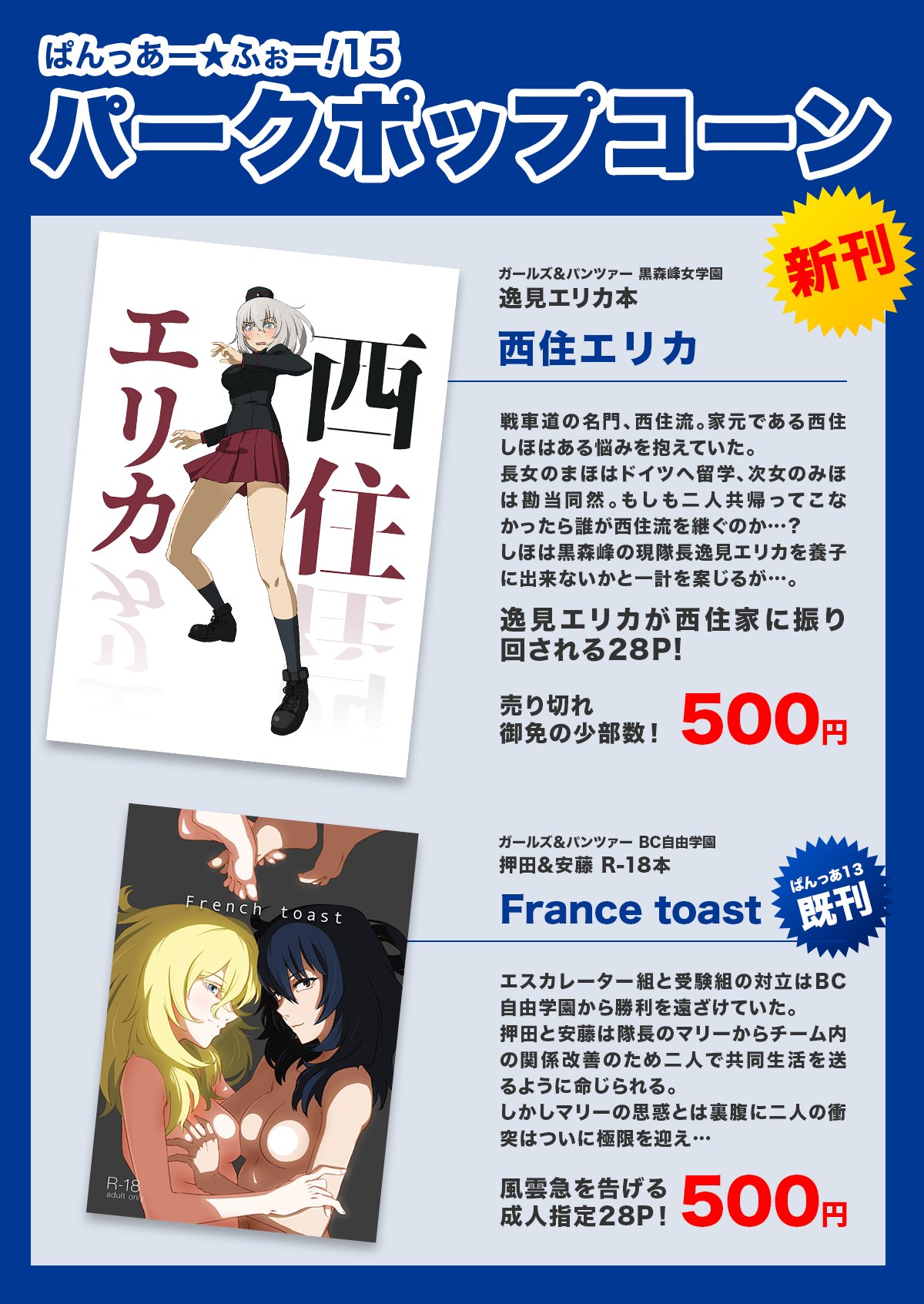 パークさん エグリゴリ On Twitter ぱんっあ ふぉー 15 サークル パークポップコーン のお品書きです 新刊の逸見本は諸事情によりちょっと数少ないです Cohenさんのbc押安えっち本も残り少数となっています 明日はl 09で僕と握手